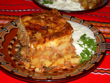 Musaka - zapiekanka z ziemniaków, mięsa i sera (zdjęcie powyżej) - około 3,5 - 4
