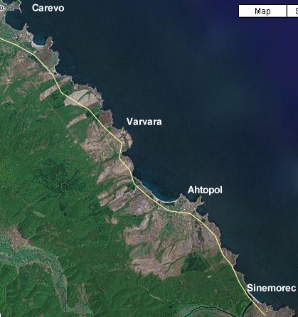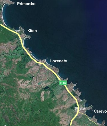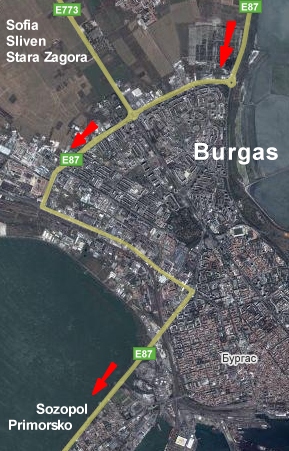 cały czas prosto kierując się na Sozopol lub objechać Burgas tak, jak na